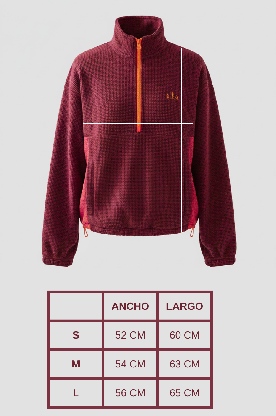 Un buzo diseñado para acompañarte en movimiento, con una tela que marca la diferencia: polar cuadrillé. Este tejido en relieve no solo le da un look distintivo, también aporta beneficios técnicos clave: